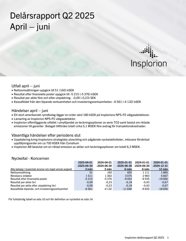 Länk till presentationen: Insplorion Q2 – VD Johan Rask presenterar kvartalsrapporten med Q&A